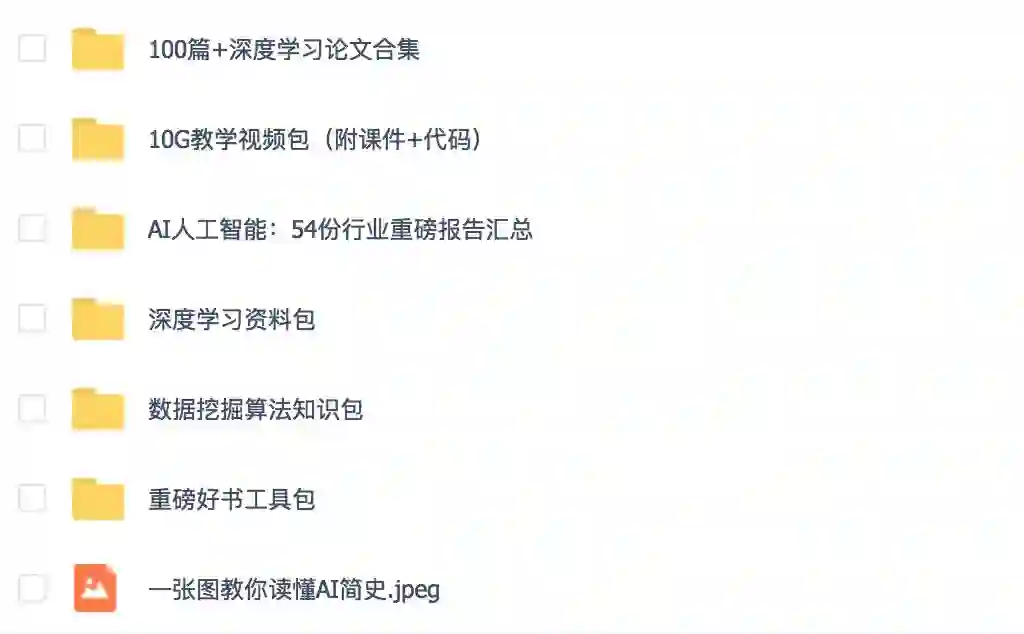 从零基础一张图读懂AI简史到熟悉全球100种数据算法工具,从AI人工智能行业重磅报告到10G教学视频,万门针对学习者的不同学习梯度,整理了适合大家的干货资料,供大家学习参考!