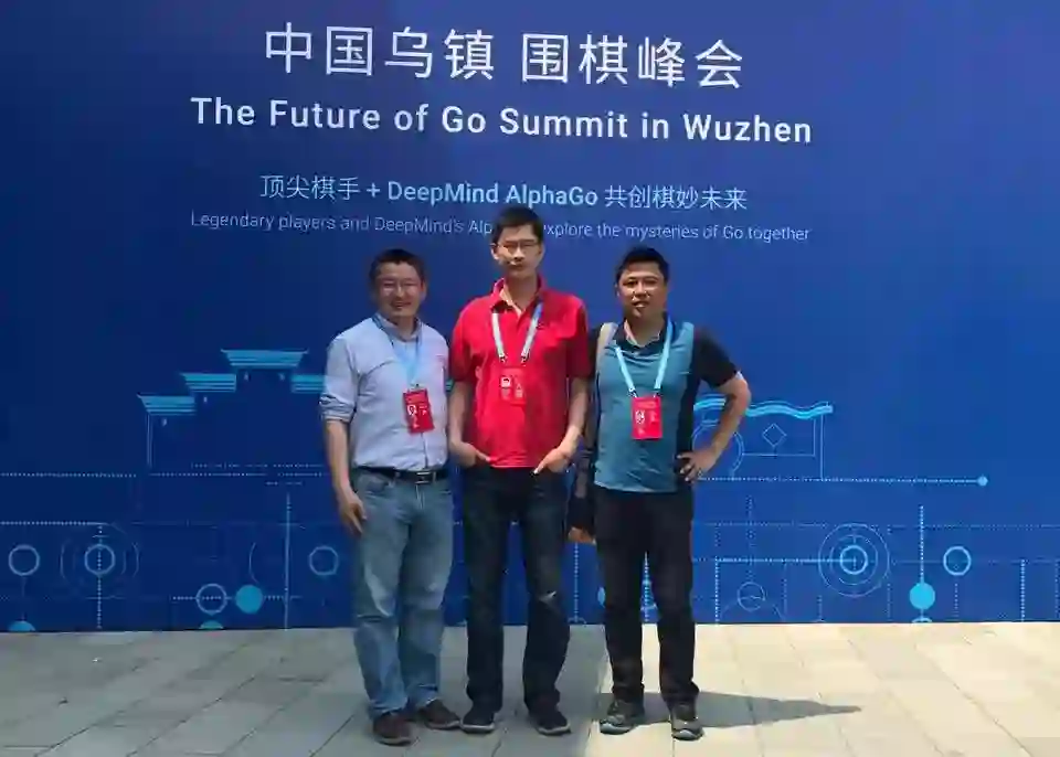 2017年5月,浙江乌镇,梦百合赞助的世界围棋公开赛期间,李光辉(右)、张琨(左)和倪张根(中)吃了一顿40分钟的午饭,敲定了投资事宜。来源:被访者供图