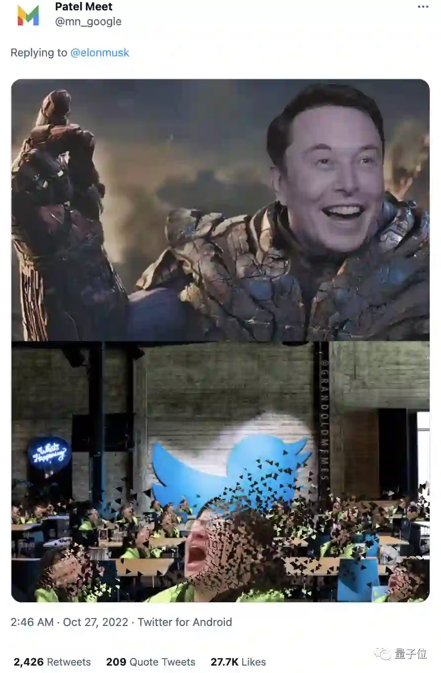 在“马斯克走进推特总部”的视频下,有网友祭出一张图,表示了对推特现有员工的同情......