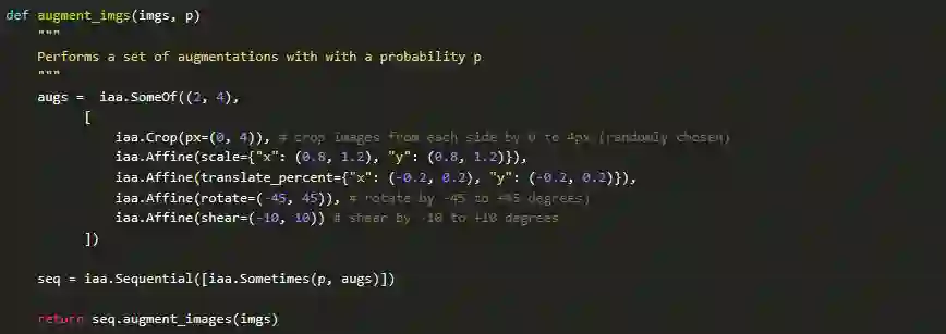 我们使用了一个名为imgaug的库来创建扩展数据。我们主要应用仿射变换来增强图像。代码如下: