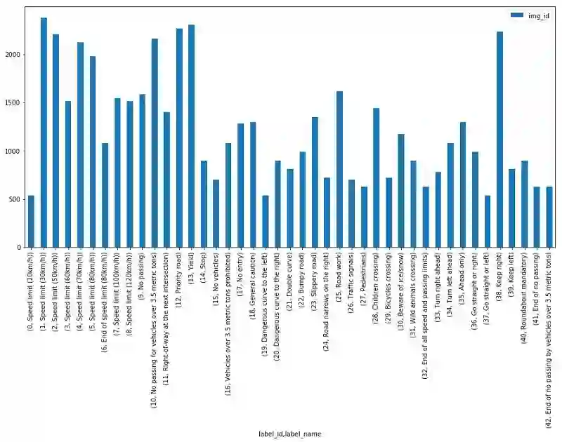 训练集中各个种类图像的数量明显不平衡,如下图所示。某些种类的图片少于200张,而其他的则有2000多张。这意味着我们的模型可能会偏向于代表性过高的种类,特别是当它的预测无法确定时。我们稍后会看到如何使用数据增强来缓解这个问题。