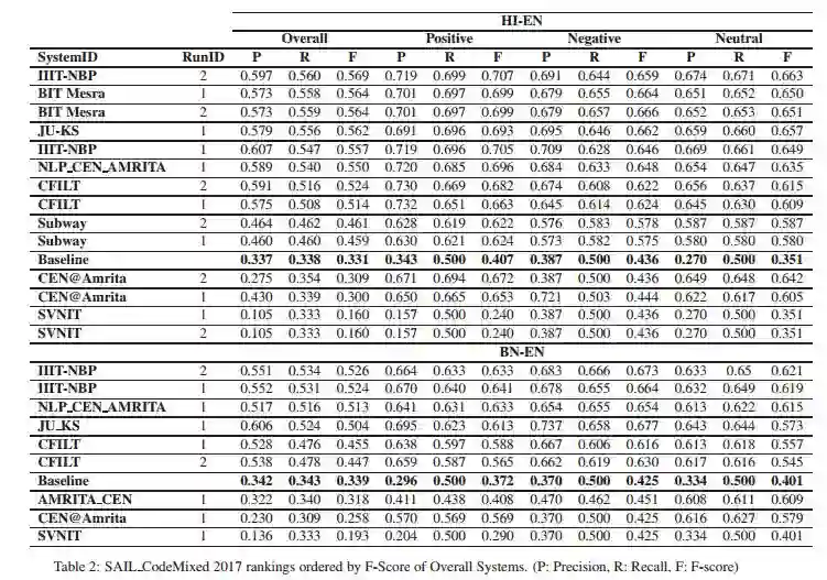 6.Sentiment Analysis of Code-Mixed Indian Languages: An Overview of SAIL_Code-Mixed Shared Task @ICON-2017(对代码混合的印度语言的情绪分析:对sail_code混合共享任务的概述)