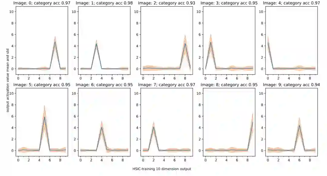 因此,对于从 HSIC 网络中训练的每个隐层表示都可能包含在特定尺度下从 HSIC-Bottleneck 目标函数中获得的不同信息。