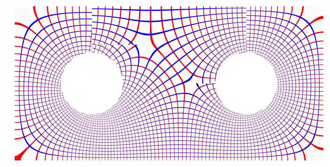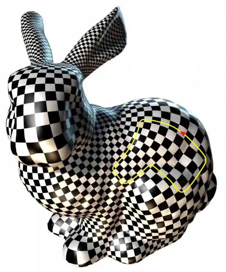这里,我们讨论了四边形网格度量应该满足的条件【4】。四边形网格生成是工程界的基本问题,但是其理论刻画的语言完全来自黎曼几何和共形几何。黎曼度量、测地线、平行移动、和乐群、共形等价、阿贝尔微分,这些概念不会在目前的计算机科学课程中提及,但是工程问题的实质就是应用这些概念其相应的定理,特别是和乐群的概念在这里起到至关重要的作用。这又一次彰显现代几何对于工程技术的指导推动作用。