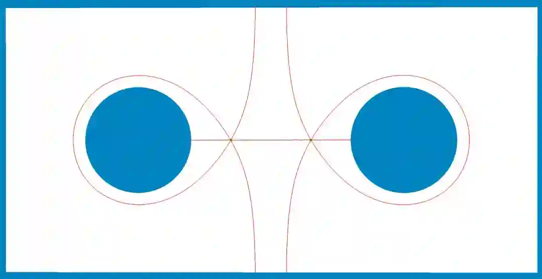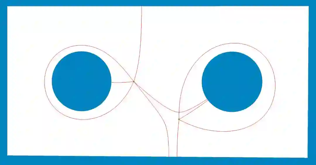。从奇异点出发的测地线如图所示,阿贝尔微分的水平轨迹为蓝色封闭回路,和内外边界平行。