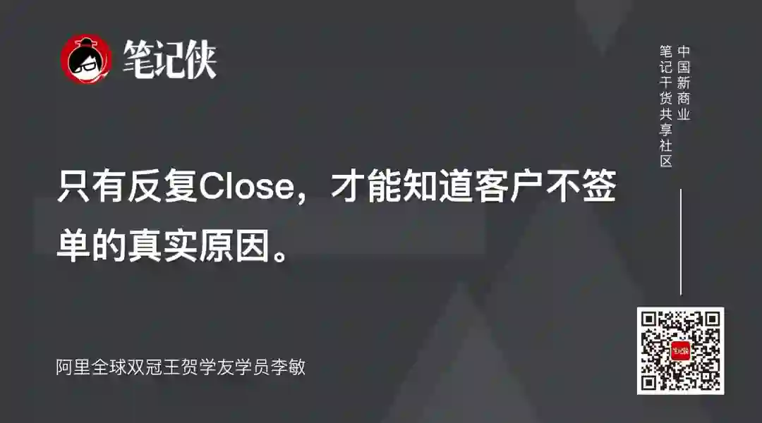 “我终于理解了贺老师说为什么要Close100遍,因为只有反复Close,才能知道客户不签单的真实原因。”