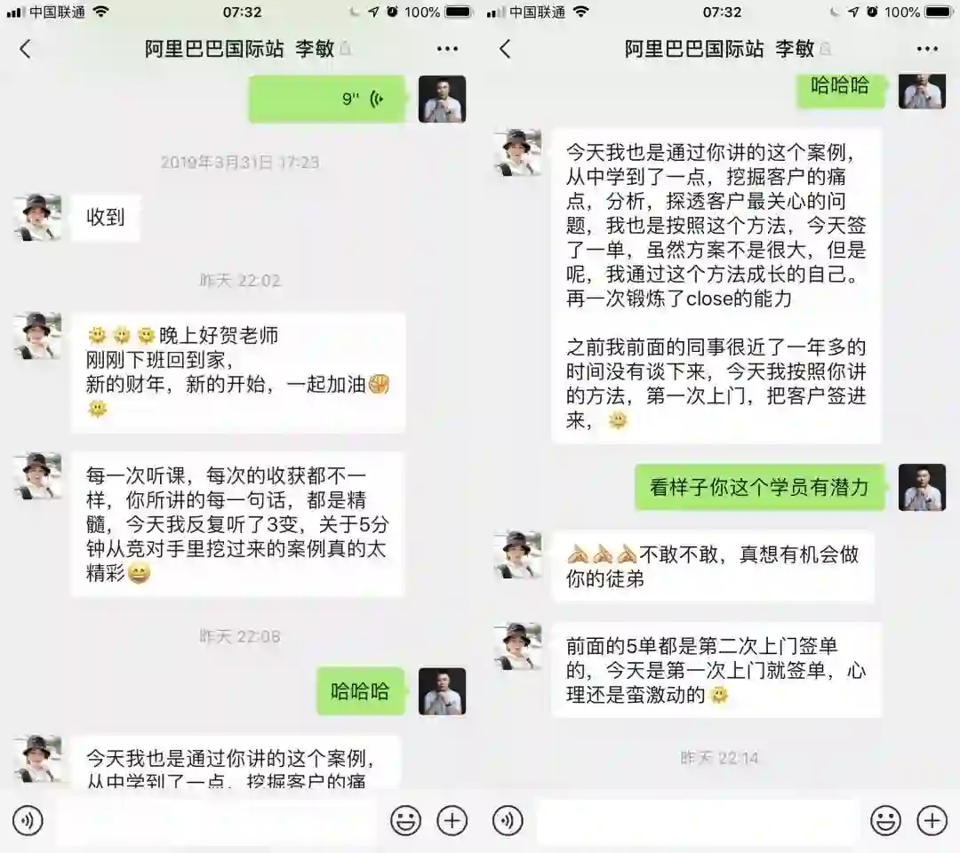 李敏说:“我亲身实践过贺老师的课程非常见效,能学到阿里中供铁军战神的销售精髓,就够了,不需要再找别的老师学习了。”