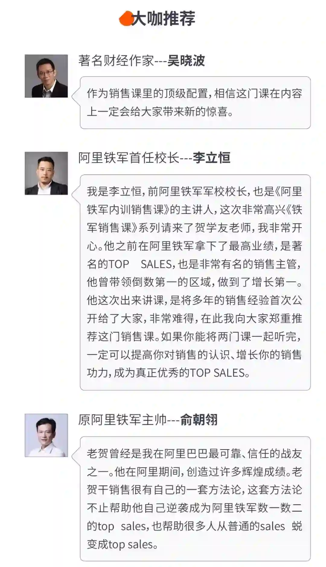 熟悉笔记侠的朋友应该知道,我们之前还推过一门“首任阿里军校校长”李立恒的销售课程,可能有小伙伴会疑惑: