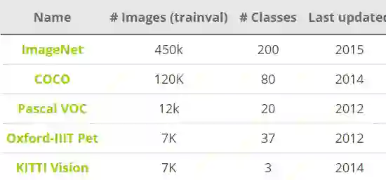 不幸的是,目标检测的数据集不是太多。数据比较难(也很昂贵)获取,公司可能不愿意免费发布他们投资的产品,大学又缺乏资源。