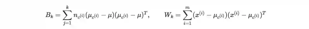 Calinski-Harabaz指数—记k为类的数量,XX和XX是类间、类内矩阵的dispersion矩阵分别表示为: