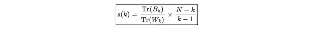 Calinski-Harabaz指数s(k)表明了聚类模型对聚类的定义的好坏,得分越高,聚类就越密集,分离得也越好。定义如下: