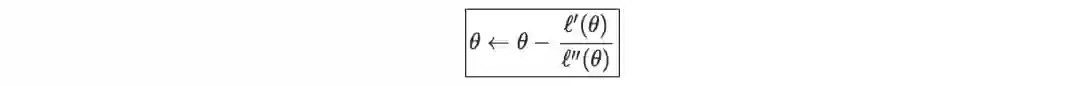 牛顿迭代法—是一种数值方法,用于找到一个θ,使 ℓ′(θ)=0成立。其更新规则如下: