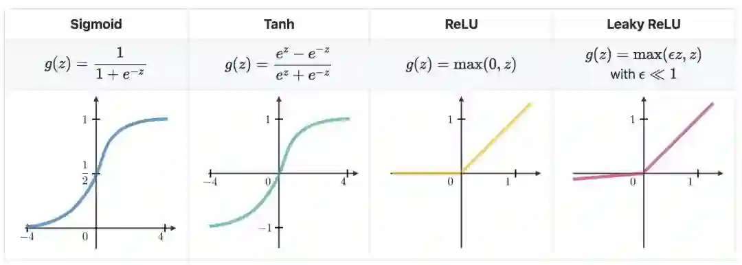 激活函数—在隐含单元的末端使用激活函数向模型引入非线性复杂性。以下是最常见的几种: