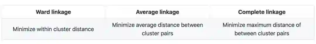 类型—为了优化不同的目标函数,有不同种类的层次聚类算法,如下表所示: