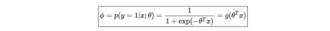 逻辑回归—一般用于处理二分类问题。假设y|x;θ∼Bernoulli(ϕ),可有如下形式: