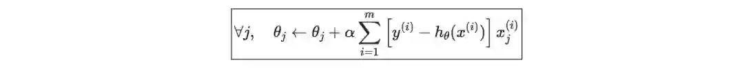 最小均方算法(LMS)—记 α为学习率,对一个包含m个数据点的训练集的LMS算法的更新规则(也叫Widrow-Hoff学习规则),如下所示: