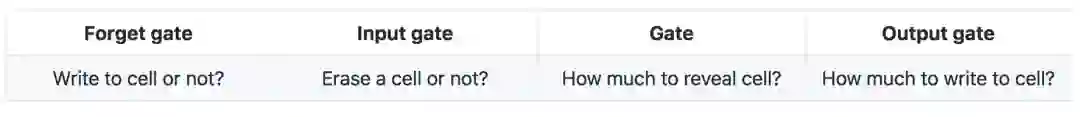 gate的类型—以下是在典型递归神经网络中存在的不同类型的gate:
