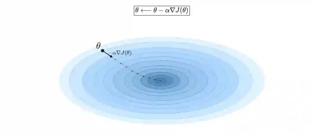 梯度下降—若学习率表示为 α∈R,则用学习率和成本函数J来定义梯度下降的更新规则,可表示为如下公式: