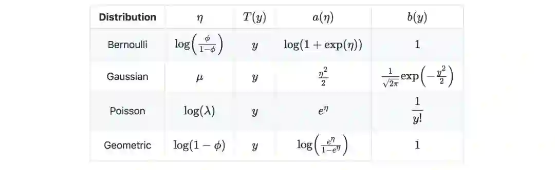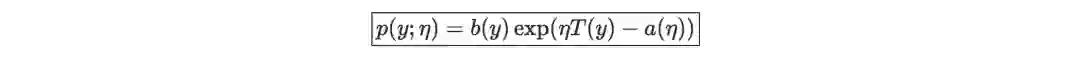 指数族(Exponential family )—若一类分布可以用一个自然参数来表示,那么这类分布可以叫做指数族,也称作正则参数或连结函数,如下所示: