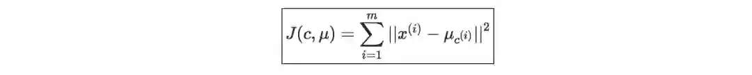 令c(i)表示为数据点i的类,μj为类j的中心。