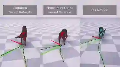 上图的动画由相位函数神经网络(Phase-Functioned Neural Networks)的方式生成,优点是动作精准,但是当两个动作进行融合时动作显得僵硬,而且操控不是那么灵敏。