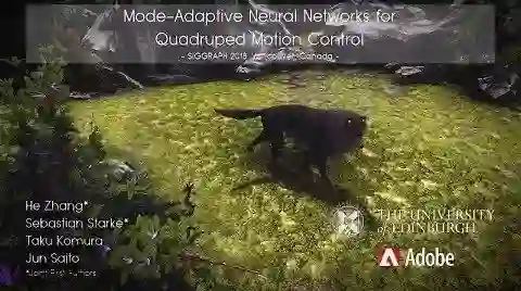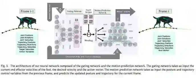 这个新研究提出了一种新的网络架构——模式自适应神经网络(Mode-Adaptive Neural Networks ,MANN),它可以从大量的非结构化四足动物运动捕获数据中学习运动控制器。
