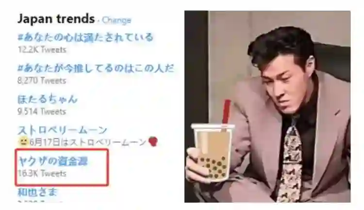 至于,“クザの資金源”(黑帮的资金来源)登上了日本推特热搜,不禁让人好奇,为什么在日本卖奶茶的是黑帮?