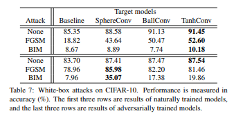 作者在黑盒和白盒的情况下,比较了两种算法的攻击:FGSM和BIM。结果显示其具有更好的防止攻击的能力。
