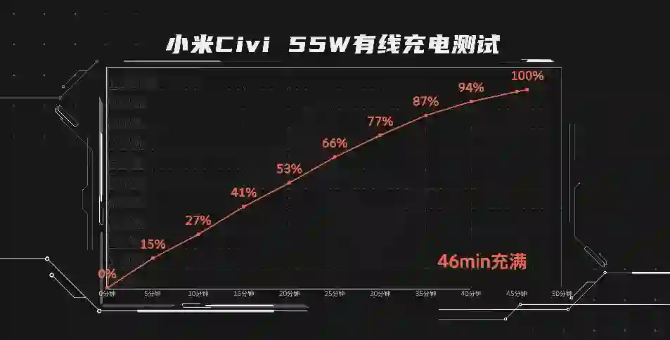 小米Civi 55W 有线充电测试