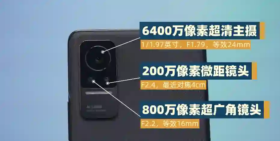 后置采用的仍然是随大流的 6400 万像素主摄+ 800 万像素超广角+ 200 万像素微距组合,基本是能够满足日常拍摄需求的。