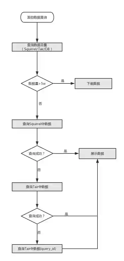 如果数据量没有超过5万,我们会走两级缓存结构。当一级缓存中有数据时直接返回,整个请求结束;如果一级缓存异常,我们会走二级缓存,二级缓存有数据直接返回,整个请求结束;如果二级缓存也发生异常(几乎不可能),我们会查询数据库。为了防止整个查询超时,我们会在用户访问时返回给前端一个query_id作为唯一的查询标识符。前端会每隔5分钟轮询调用后台接口,直到有数据返回,整个查询结束。这样就很好地解决了当数据量过大,无法正常返回的场景。