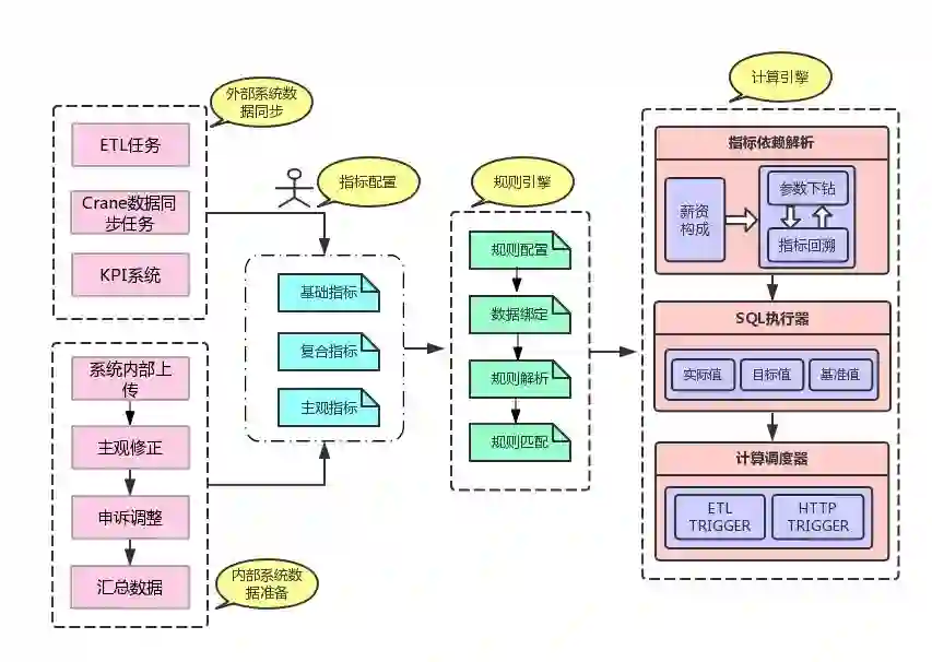 规则引擎完成了指标考核规则的配置、解析和匹配功能,使指标数据的计算更加准确、高效,同时,计算过程可追溯、可解释