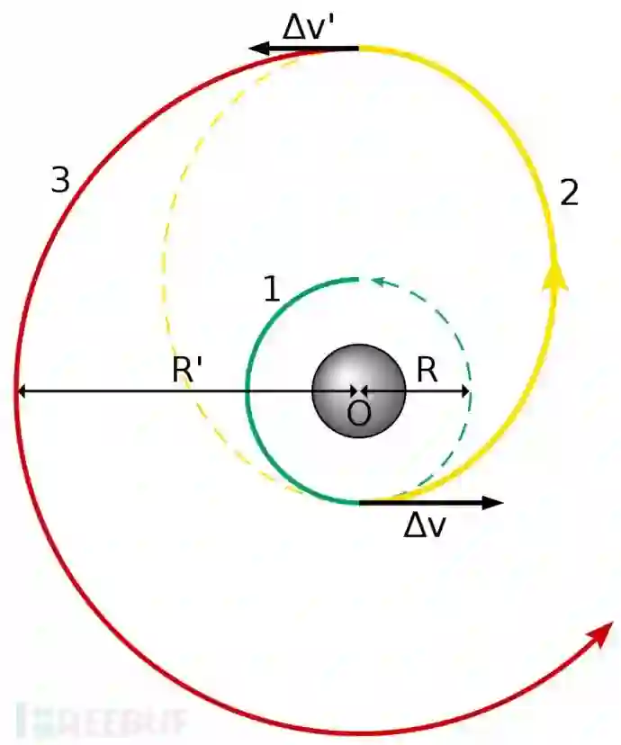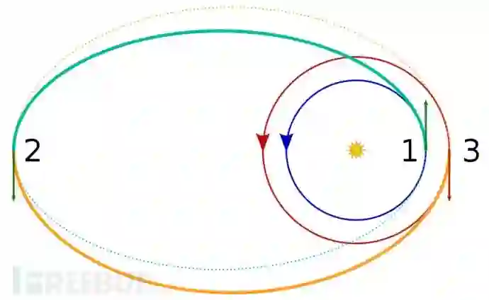 双椭圆轨道同样也是转移轨道的一个重要轨道,相对于霍曼转移轨道,椭圆转移轨道会节约一些燃料但是更耗时间。
