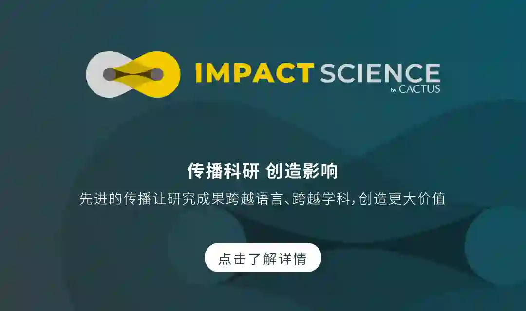 Impact Science (impact.science)是开科思(cactusglobal.com)旗下科研传播的旗舰品牌, 旨在通过高参与度的方式帮助出版社、期刊和学协会以及科研人员推广科学内容,通过定制化服务,让研究成果产生跨越学科的广泛影响力,触及专业学者及相关领域从业者、普通公众。