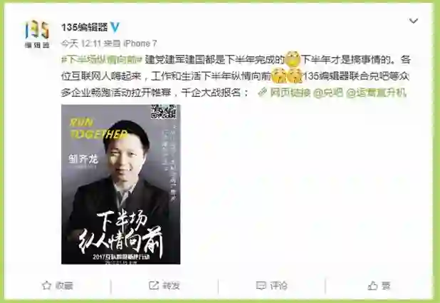 与召集人合作是所有品牌必备环节,不同于其他品牌传播只邀请明星,兑吧针对互联网企业跑的特点,活动的召集人更多是邀请了互联网公司的CEO,及各行业意见领袖。例如悦动圈、脉脉、中华万年历等百家知名互联网公司的CEO,天使湾、鼎聚创投等知名投资人,和史航、莫小棋、王东、王鹤润等影视圈明星,作为“下半场,纵情向前”互联网圈畅跑行动的召集人。活动通过为嘉宾定制下半场的宣传海报图,来表达各嘉宾的观点态度。
