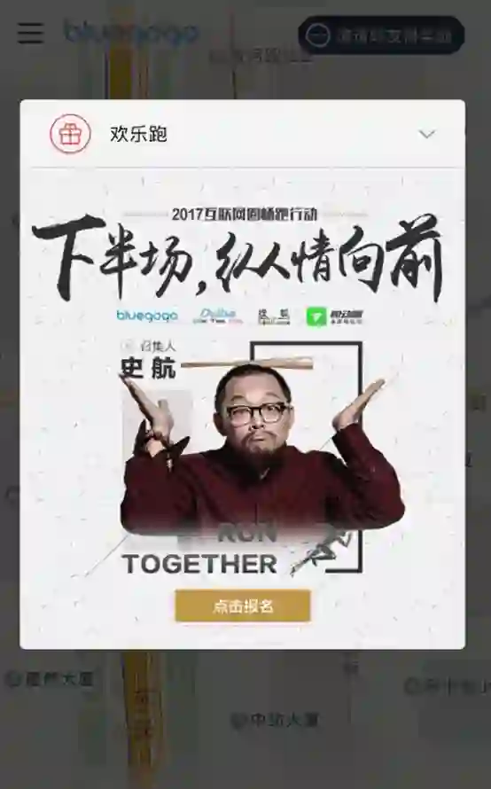 线上:不论是传统网络媒体的banner广告位,还是APP如悦动圈、考拉FM、小蓝单车、脉脉的开屏广告、话题推送、消息push、首屏主banner,用户都可以清晰的看到“下半场 纵情向前”的标志性字样,持续引爆本次活动的话题与热度;