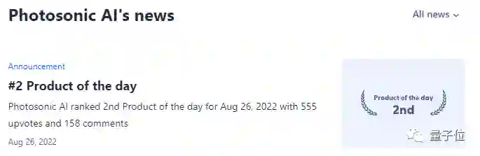 前不久,一家公司照着Stable Diffusion做了个盗版,名叫Photosonic AI,结果在产品社区 Product Hunt上直接排到了第二名。