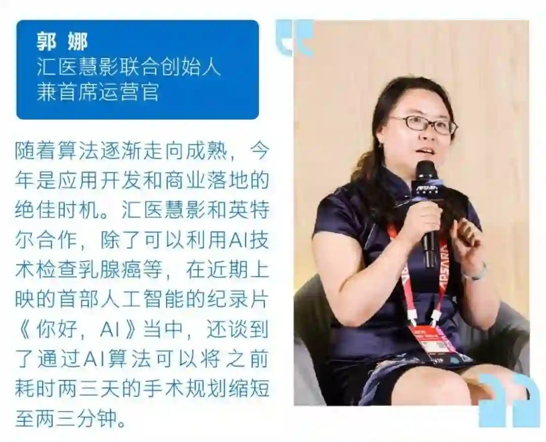 汇医慧影联合创始人兼首席运营官 郭娜表示:”随着算法逐渐走向成熟,今年是应用开发和商业落地的绝佳时机。“