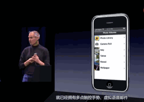 2007 年 1 月,乔帮主推出第一台 iPhone 手机,用以替补逐渐卖不出去的 iPod(乔布斯把 iPhone 比作一部电话 + 一部 iPod + 一个上网设备 = 第一代 iPhone。)。
