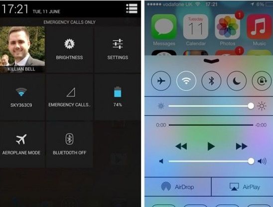 不过苹果控制中心的界面跟早期安卓控制面板非常相像,当时很多人认为苹果“借鉴”了安卓。