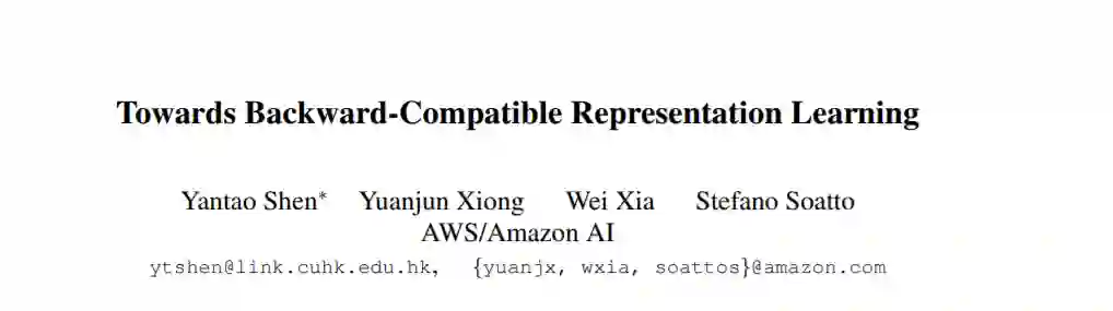 我们提出了一种学习视觉特征的方法,即使这些特征具有不同的维数,并且是通过不同的神经网络结构和损失函数来学习的,也能与之前的计算结果相兼容。兼容意味着,如果这些特性用于比较图像,那么“新”特性可以直接与“旧”特性进行比较,因此它们可以互换使用。这使得视觉搜索系统在更新嵌入模型时,可以绕过计算所有以前看到的图像的新特性,这个过程称为回填。向后兼容性对于快速部署新的嵌入模型至关重要,这些模型利用了不断增长的大规模训练数据集和深度学习体系结构和训练方法的改进。我们提出一个框架来训练嵌入模型,称为向后兼容训练(BCT),作为向后兼容表示学习的第一步。在人脸识别的嵌入学习实验中,使用BCT训练的模型在不牺牲精度的前提下,成功实现了向后兼容,实现了可视化嵌入的无填充模型更新。
