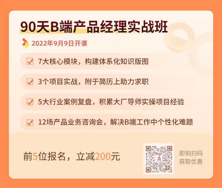 推荐你来《90天B端产品经理实战班》提升,多位10年+经验大厂实战导师在线直播,带你掌握系统的B端产品工作方法,助力你顺利转岗&提升专业能力。