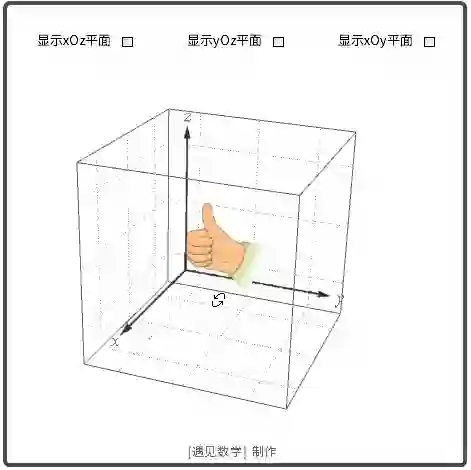 为给空间的点定位, 需要由三条相互垂直的轴. 如下图所示轴组成右手坐标系
