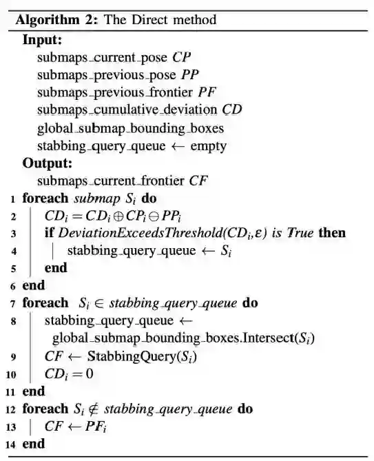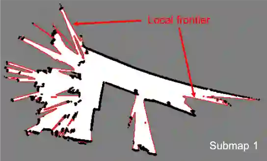 论文利用Cartographer方法作为基础SLAM模块创建子图并在由图优化引起的几何共对齐子图中执行有效的边界检测,提出一种主动勘探的集成方法。作者还对边界及其集群的可达性进行分析,以确保机器人可以到达检测到的边界。方法在真实室内场景的移动机器人上进行测试,以证明方法的有效性和效率。