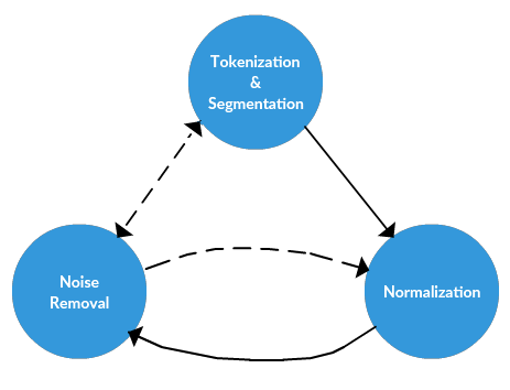 正如你所认为的,噪声消除和数据收集之间的界线很模糊,由于噪声消除与其他步骤联系紧密,因此它必须在其他步骤之前进行。例如,从JSON结构中获取的文本显然要在标记化之前消除噪音。