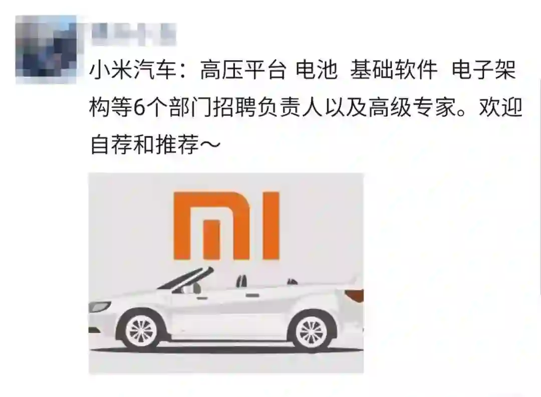 “这些人在互联网公司的职业生涯或多或少都遇到了瓶颈,想趁着新能源车行业爆火的机会踏上一个新的职业高度。小米汽车处于起步阶段,有利于他们从技术开发岗转至管理岗位。”