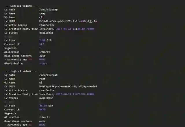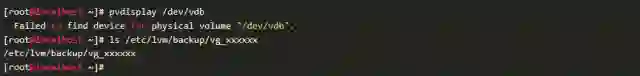 分区还在,但是LVM结构丢失,经检查,由LVM工具链维护的备份数据/etc/lvm/backup/vg_xxxxxx文件还在。因此,这种情形下,按照我们的恢复流程,只要在分区之上,尝试重建LVM和文件系统,应该就可以解决问题。