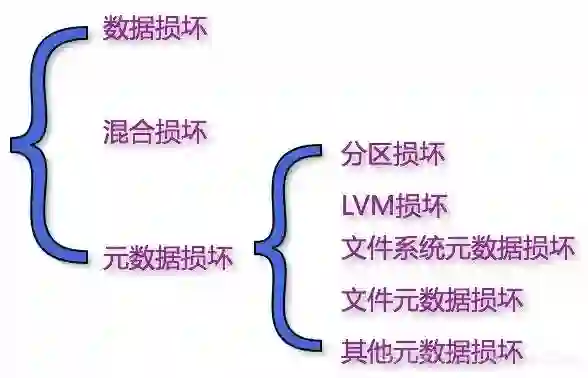 基于以上分析,我们可以把数据损坏简单分三类类:元数据损坏、数据损坏或者前面两种损坏类型的混合型损坏。