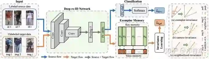 在跨数据集的场景下,行人再识别模型的性能往往会受到极大的影响,尤其在源数据集和目标数据集差异很大的情况下。当前主流的方法主要通过降低两个数据集之间的特征分布差异以提升模型对新数据集的鲁棒性。然而,这些方法忽略了目标数据集的域内变化,这些变化中包含了影响目标域性能的重要因素。本篇工作针对目标数据集提出了三种潜在的域内不变性(样例不变性,相机不变性和邻域不变性)。与此同时,作者提出了一个基于样例的记忆模块,使得在模型训练过程中能够有效的引入提出的三种不变性限制。实验表明,该方法在三个行人再识别跨数据集场景下取得了当前最好的结果,并大大的超过了现有的方法。