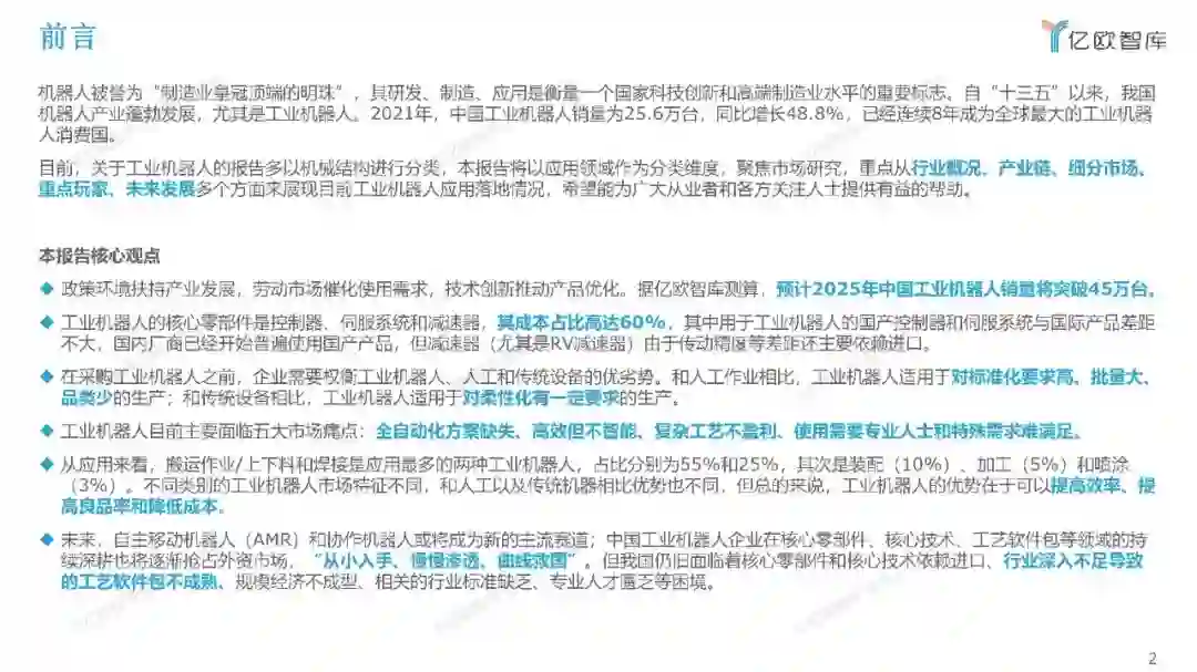 便捷下载,请关注专知公众号(点击上方蓝色专知关注) 后台回复“R61” 就可以获取《2022中国工业机器人市场研究报告,61页ppt》专知下载链接